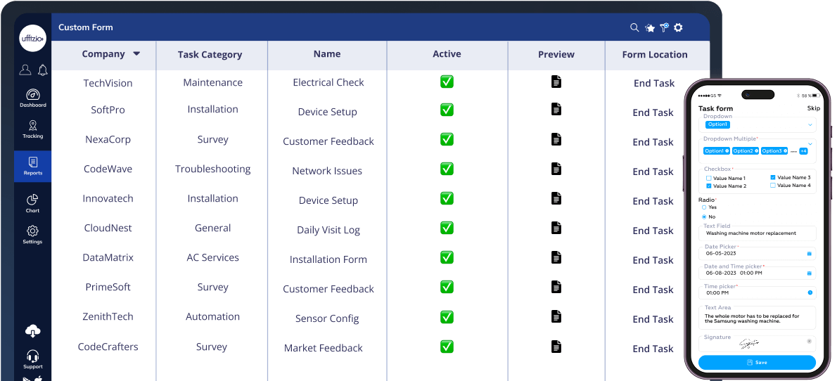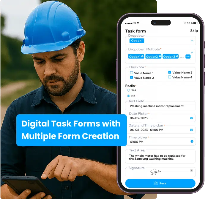 - Easy Integration: Attach forms to tasks, allowing employees to complete them on-site.