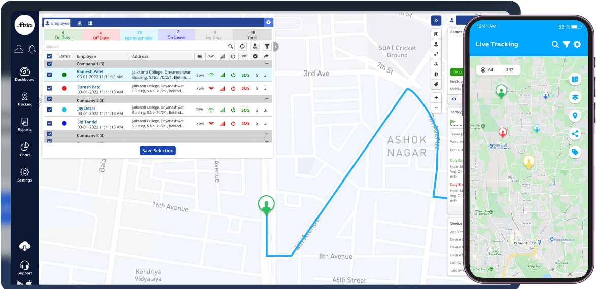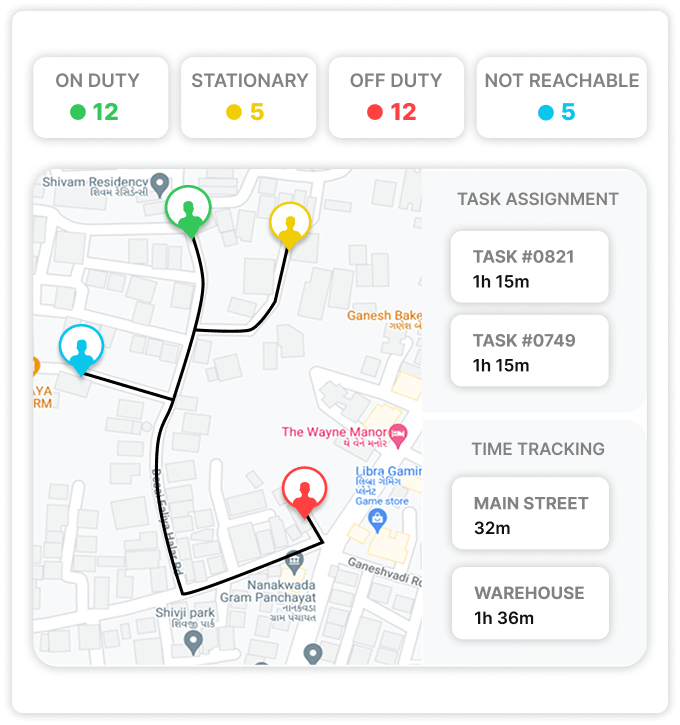 Eliminate manual tracking, generate reports on employee routes, attendance, and task history with a single click, saving time and providing actionable insights for management.