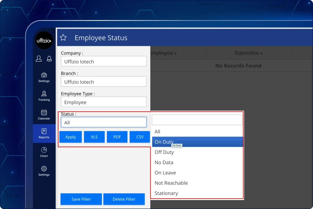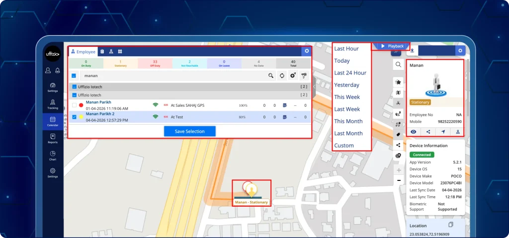 - Work status such as (On duty, Off duty, No data, Stationary, and Not reachable)