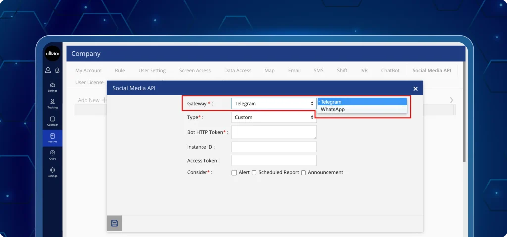 - Activate the Social Media API tab in the company screen.