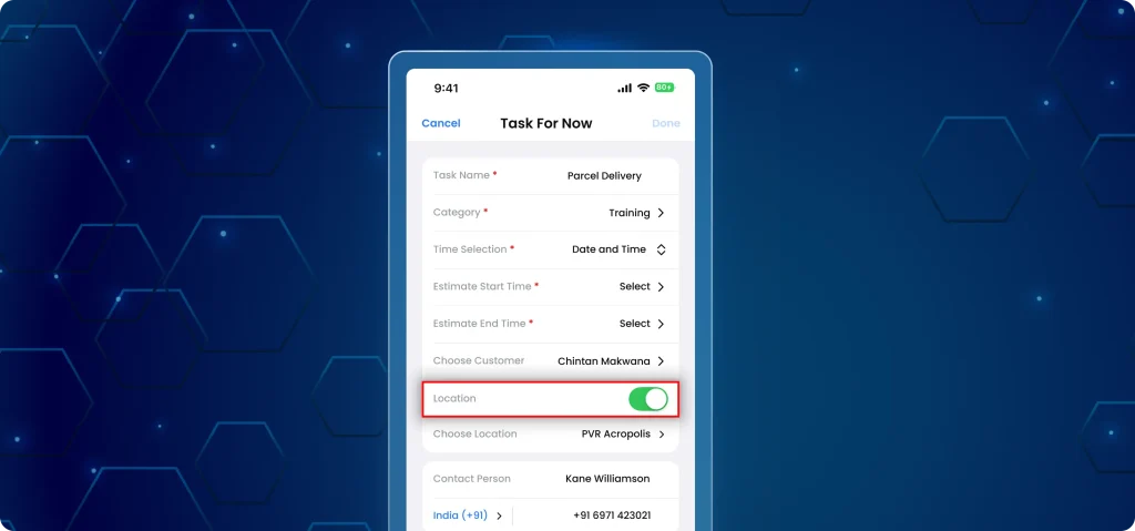 - Ensures field teams are physically present at the selected location before starting a task.