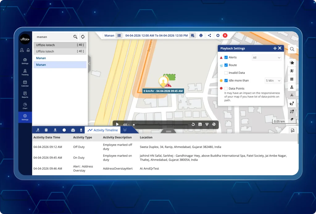 - View a chronological activity timeline for any employee on a selected date.